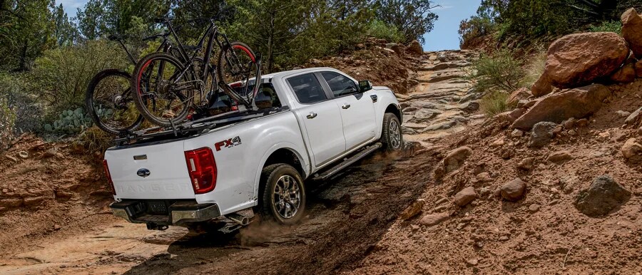 The 2022 Ford Ranger is built for serious off-road travel. Ready for adventure, its approach and departure angles help it climb hills and clear obstacles. Ranger 4x4 models also boast 8.9 inches of ground clearance for more capable navigation on uneven territory, while Ranger models equipped with the Tremor® Off-Road Package deliver an even more impressive 9.7 inches of ground clearance. And for protection while you navigate rough terrain, the FX4 and Tremor® Off-Road Packages include an exposed steel front bash plate and undercarriage skid plates. Ranger also offers 4H and 4L gear ratios, providing increased wheel torque for low-speed off-road situations.*