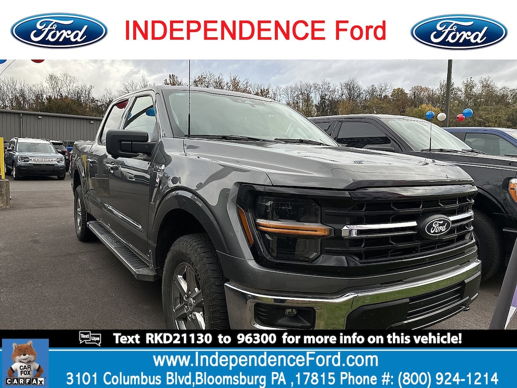 Come see this 2024 Ford F-150 XLT. Its Automatic transmission and Regular Unleaded V8 5.0 L engine will keep you going. This Ford F-150 features the following options: Wheels: 18" Chrome-Like PVD, Voice Activated Dual Zone Front Automatic Air Conditioning, Transmission: Electronic 10-Speed Automatic -inc: SelectShift w/progressive range select and selectable drive modes: normal, ECO, sport, tow/haul, slippery, deep snow/sand and mud/rut, Transmission w/Driver Selectable Mode, Trailer Wiring Harness, Tires: 275/65R18 BSW A/T, Tailgate Rear Cargo Access, SYNC 4 w/Enhanced Voice Recognition -inc: 12" LCD capacitive touchscreen w/swipe capability, wireless phone connection, cloud connected, AppLink w/App catalog, 911 Assist, Apple CarPlay and Android Auto compatibility, digital owners manual, conversational voice command recognition and connected navigation, Note: Navigation services require SYNC4 and FordPass Connect (optional on select vehicles), Eligible vehicles receive a complimentary 1-year trial of navigation services that begins on the new vehicle warranty start date, Customers must unlock the navigation service trial by activating the eligible vehicle w/a FordPass member account, If not subscribed by the end of the complimentary period, the connected navigation service will terminate, and the system will revert to embedded offline navigation, Connected service and features depend on compatible AT&T network availability, Evolving technology/cellular networks/vehicle capability may limit functionality and prevent operation of connected features, FordPass App, compatible w/select smartphone platforms, is available via a download, Message and data rates may apply, Streaming Audio, and Solid Axle Rear Suspension w/Leaf Springs. Test drive this vehicle at Independence Ford, 3101 Columbia Boulevard Route 11, Bloomsburg, PA 17815.