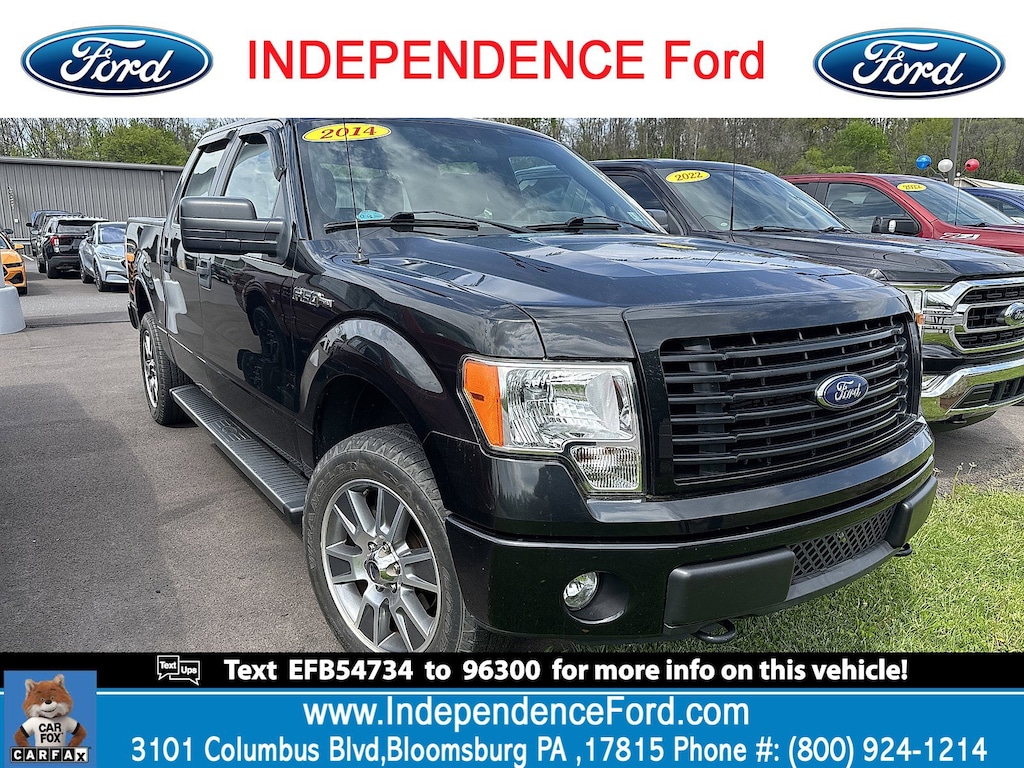 Check out this 2014 Ford F-150 . Its Automatic transmission and Regular Unleaded V-8 5.0 L/302 engine will keep you going. This Ford F-150 features the following options: Transmission: Electronic 6-Speed Automatic -inc: tow/haul mode, Trailer Wiring Harness, Tailgate Rear Cargo Access, Solid Axle Rear Suspension w/Leaf Springs, Safety Canopy System Curtain 1st And 2nd Row Airbags, Remote Keyless Entry w/Integrated Key Transmitter, Illuminated Entry and Panic Button, Power Rear Windows, Power Door Locks w/Autolock Feature, Perimeter Alarm, and GVWR: 7,350 lbs Payload Package. Stop by and visit us at Independence Ford, 3101 Columbia Boulevard Route 11, Bloomsburg, PA 17815.