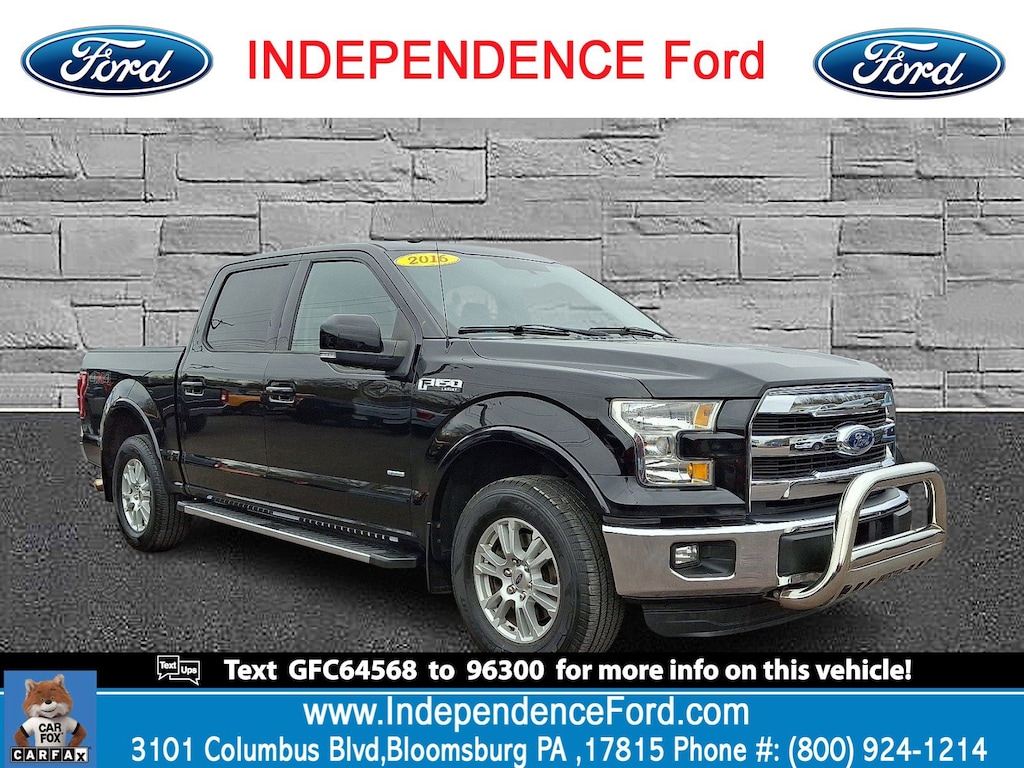 Come see this 2016 Ford F-150 Lariat. Its Automatic transmission and Regular Unleaded 2.7 L EcoBoost engine will keep you going. This Ford F-150 features the following options: BLACK, LEATHER-TRIMMED BUCKET SEATS -inc: 4-way adjustable driver/passenger headrests, heated and cooled 10-way power driver and passenger w/power lumbar, memory driver's seat, flow through console w/floor shift and 2nd outlet in console when ordered w/110V/400W outlet (91V), Voice Activated Dual Zone Front Automatic Air Conditioning, Transmission: Electronic 6-Speed Automatic -inc: tow/haul mode, Transmission w/Driver Selectable Mode, SelectShift Sequential Shift Control and Oil Cooler, Trailer Wiring Harness, Tires: P275/65R18 OWL A/T, Tailgate Rear Cargo Access, SYNC 3 -inc: Enhanced voice recognition communications and entertainment system w/911 Assist and Applink, 8" LCD touchscreen in center stack w/swiping and pinch-to-zoom capabilities, 8" productivity screen in instrument cluster, 2 smart charging USB ports, compass and clock display, Streaming Audio, and Solid Axle Rear Suspension w/Leaf Springs. Test drive this vehicle at Independence Ford, 3101 Columbia Boulevard Route 11, Bloomsburg, PA 17815.